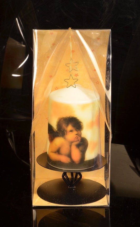 Glas in Lood kaars, Rond, H: 14 cm - Kerst
