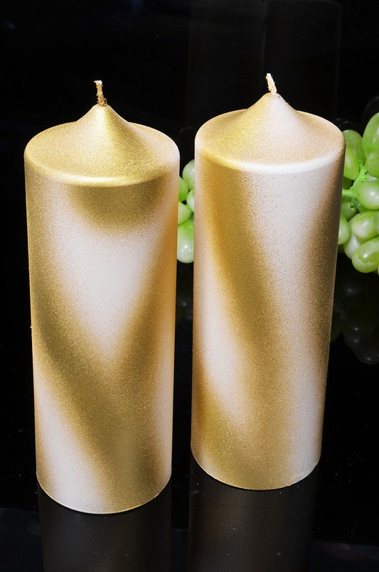 Klok kaars XXL, Perl Mat Wit en GOUD Metallic hoogte 19 cm