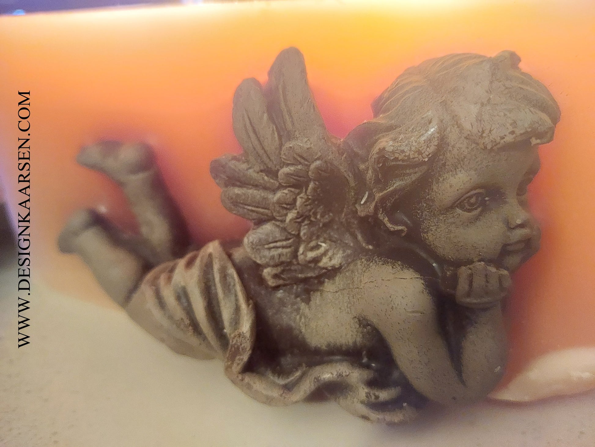 Prachtige 2 pits kaars met daarop een 3d applicatie van een engeltje.