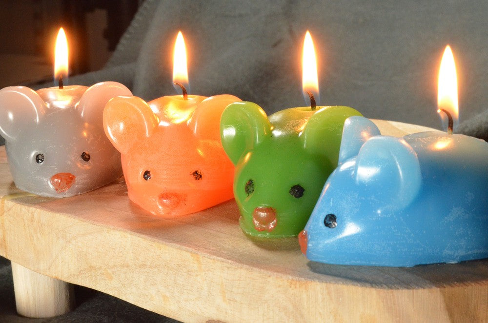 ===================================== Haben Sie Probleme mit Mäusen? Set mit 4 großen Mauskerzen. Jede Maus hat eine andere Farbe. Hergestellt von Candles by MilaNNE, wird es in einer Geschenkbox geliefert.