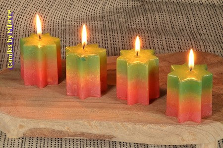 4x wunderschöne handgefertigte Sternkerzen (A) in 3 Farben 6x6 cm