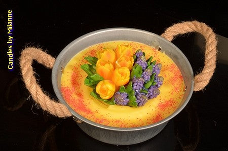 Blumenkastenkerze im Metallbehälter, Ø 18 cm, H: 8 cm - B