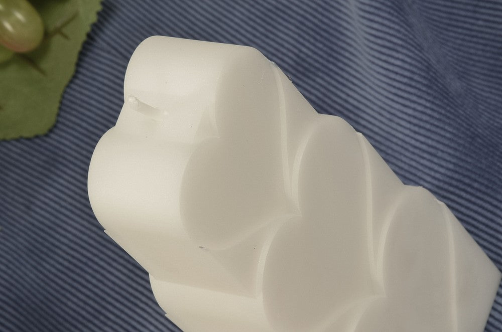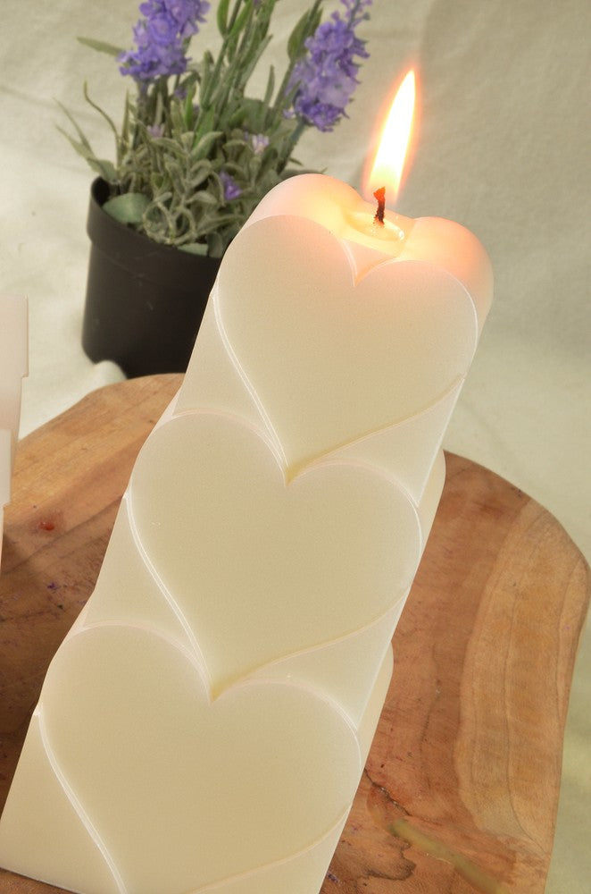 Diese wunderschöne, gestapelte Herzkerze ist handgefertigt und mit einer perlmuttartigen Beschichtung veredelt. Die Höhe dieser Designkerze beträgt 18 cm und sie wurde von Candles by MilaNNE hergestellt.