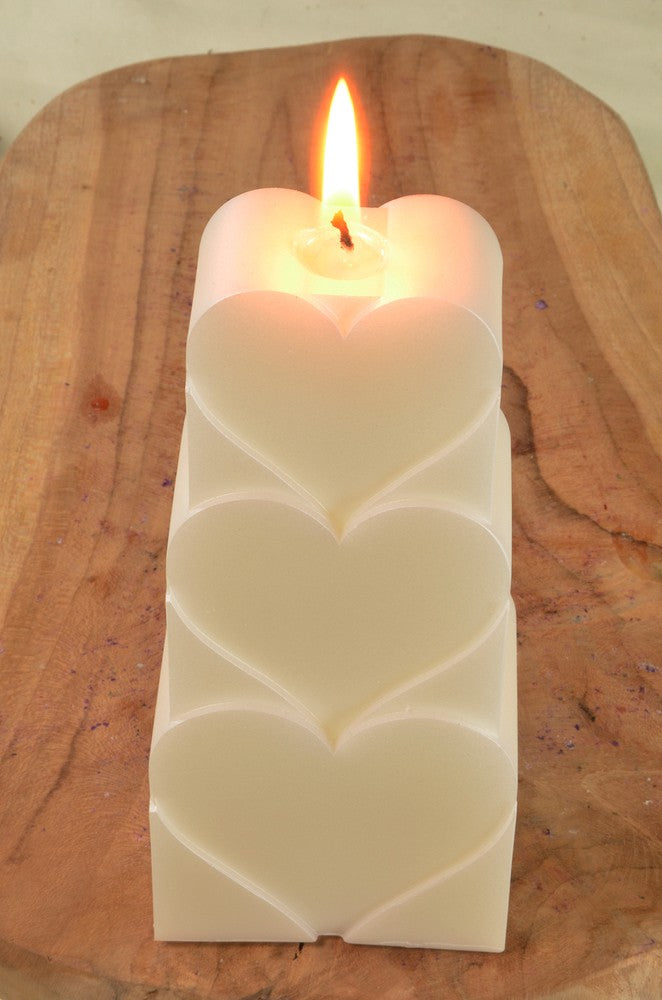 Kerze mit gestapelten Herzen, MATTPERLWEISS, Höhe: 18 cm