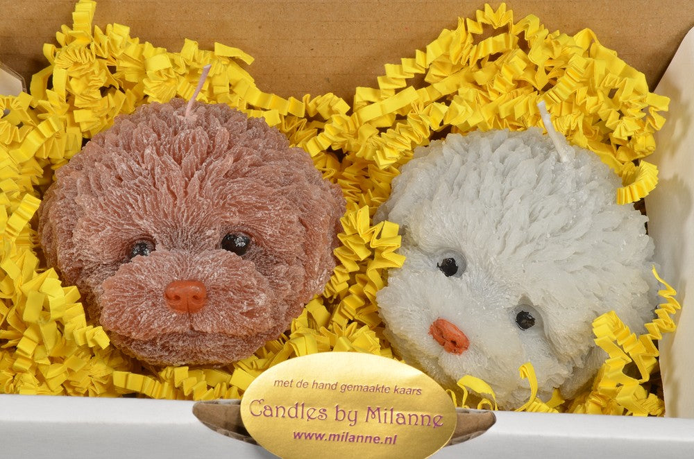 ===================================== Wunderschönes Set aus zwei Hundekopfkerzen. Sie erhalten eine braune und eine graue Kerze. Diese Kerzen werden von Candles by MilaNNE handgefertigt, daher ist die Qualität gut.