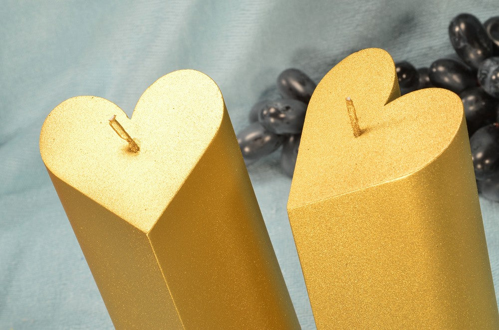 Herzkerze, GOLDmetallic mit Marmorwachs, Höhe: 18 cm