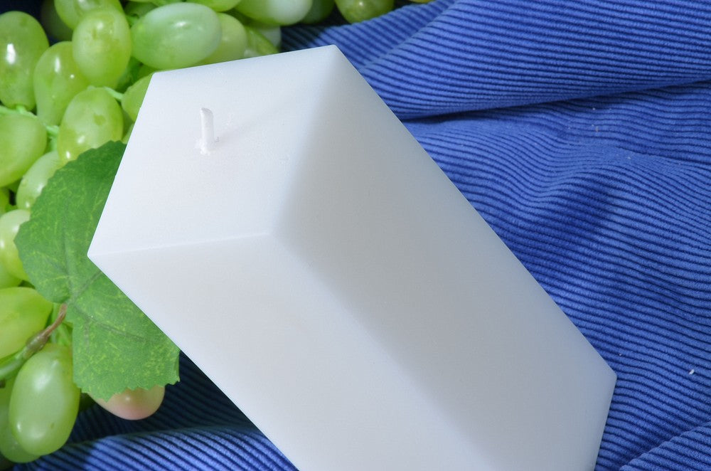 Wunderschöne Quadrant-Kerze in der breiten Ausführung (6 x 6 cm, Höhe: 16 cm, Gewicht: 440 g). Komplett handgegossen, keine industriell gefertigte Kerze. Hergestellt aus 100 % reinem Paraffin und Stearin.