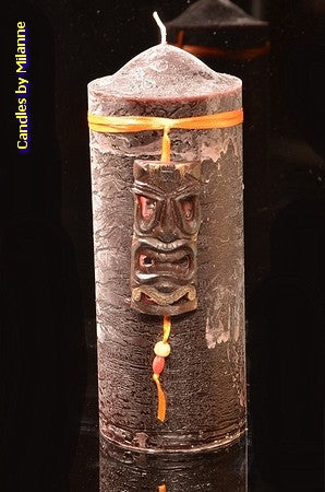 XXL Maskenkerze mit Afrika-Applikation 8x20 cm