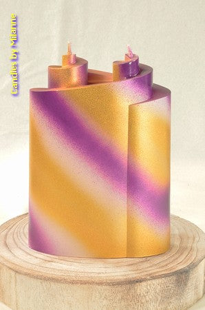 PIAF-Kerze in GOLD, LILA und WEISS Höhe: 18 cm