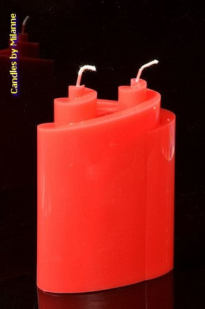 Piaf-Kerze mit 2 Dochten, ROT, METALLIC, Höhe: 18 cm