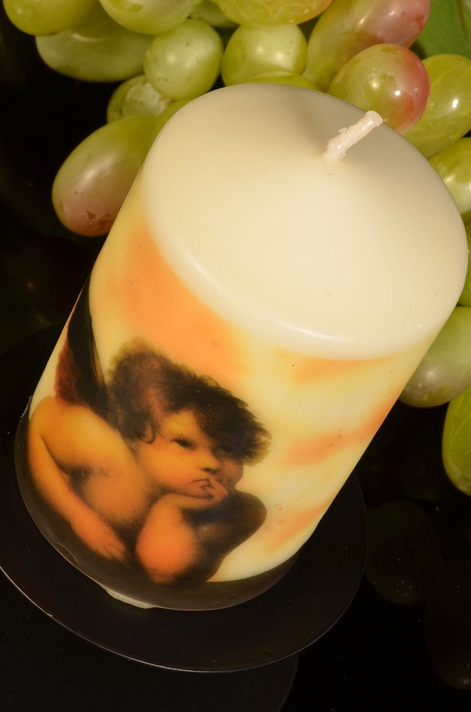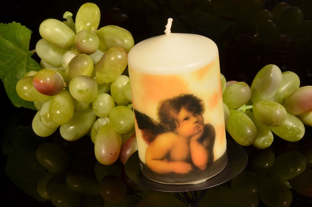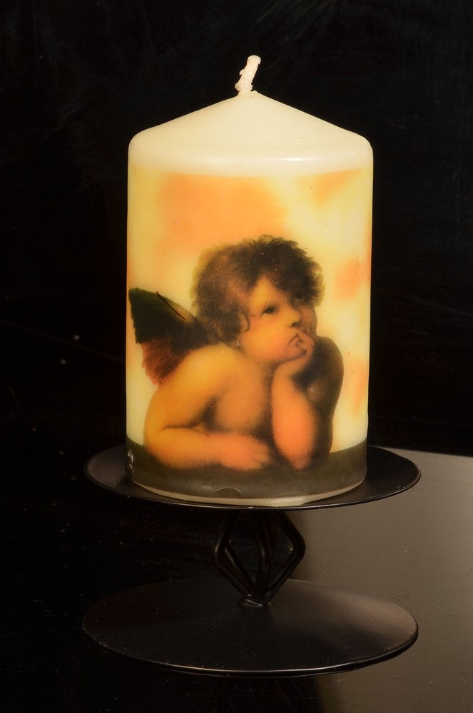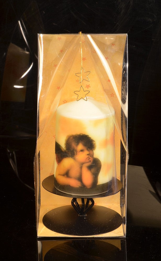 Raphael-Kerze. Diese Kerze wird mit einem passenden Kerzenhalter aus Metall geliefert.