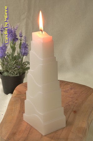===================================== Höhe: 21 cm, Breite: 7,5 cm, Tiefe: 6 cm, Gewicht: 420 Gramm. Diese Kerze wird zu 100 % von Kaarsenhuis Milanne in den Niederlanden handgefertigt. Einfach ein wunderschönes Design, das wir täglich in Dutzenden von Farben und Ausführungen verkaufen.
