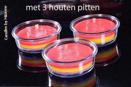 TRI-COLORE+ Holzdochtkerze NIEDRIGE Schale mit 3 Dochten 14 cm
