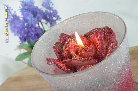 ===================================== Zondermeer wonderschone kaars van een roos in een prachtig glas. In vakjargon noemen we dit een "moederdag kaars", maar oma's vinden hem ook heel mooi. Hij bestaat in 3 verschillende afmetingen en ook nog in vele kleuren, zoals rood, wit, paars en goud. Uiteraard komt deze kaars in een cellofaan geschenkverpakking.