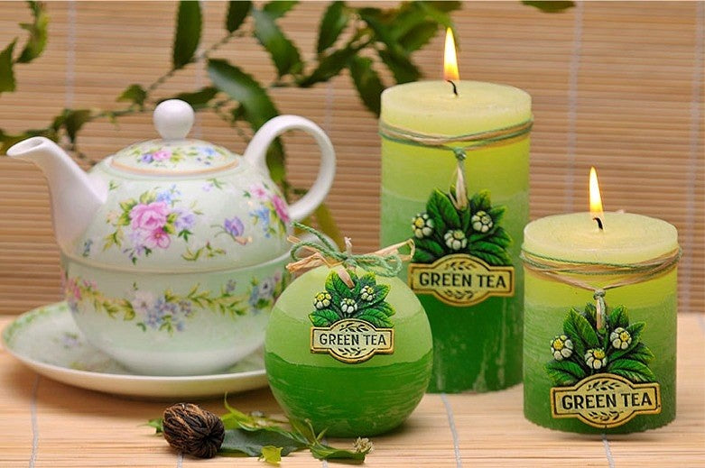 Groene Thee kaars, Rechthoek, H: 14 cm