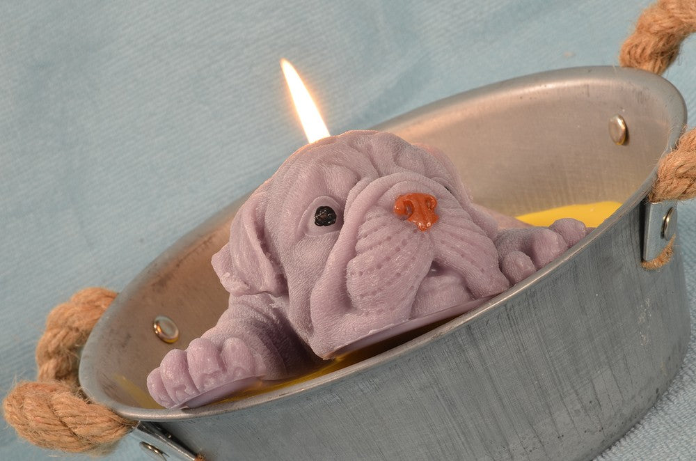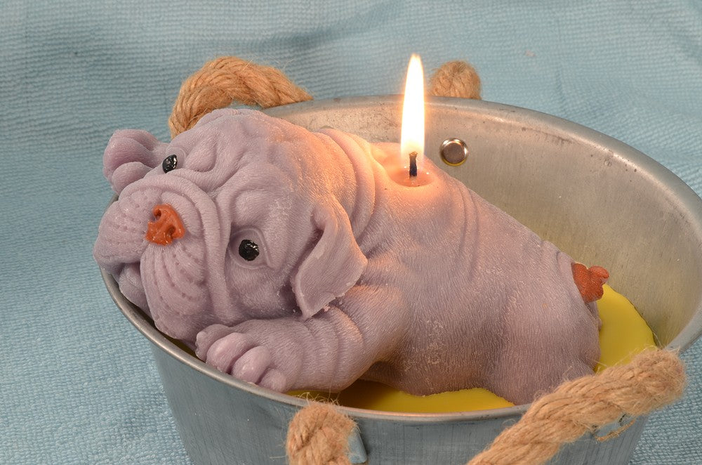 Megagrote "Hond in de Pot" kaars, (GRIJS) handwerk kaars