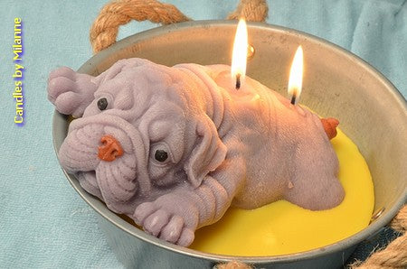 ============================== Wel eens een hond in de Pot gezien? Of liever gez\egd in de vanillevla. Een originele designkaars met 2 pitten en uitgevoerd in een metalen bak. Een mooiere hondenkaars is er niet.