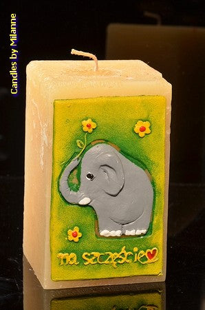 Olifant kaars GROEN Vierkant, H: 12 cm