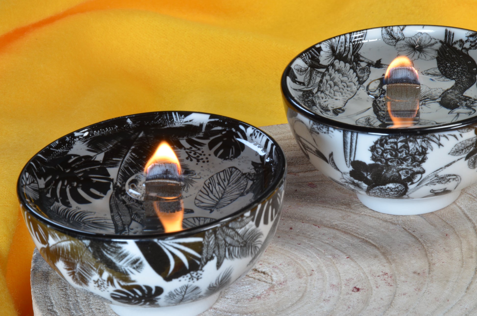 ============================== Prachtige kaarsen-set bestaande uit 2 verschillende kaarsen met houten pit.Doordat we transparante gelwas hebben gebruikt, komt de zwart-wit pentekening in de schaal, ook als de kaars aan is, volledig tot zijn recht.U krijgt 2 aardewerk schaaltjes voor 1 prijs. Transparante was en een houten pit.>Gewicht is 300 gram per schaaltje. - Aantal branduren is ongeveer 16 uur per schaaltje. Lees hier hoe deze serie aan zijn naam komt. Nieuw voor 2025: