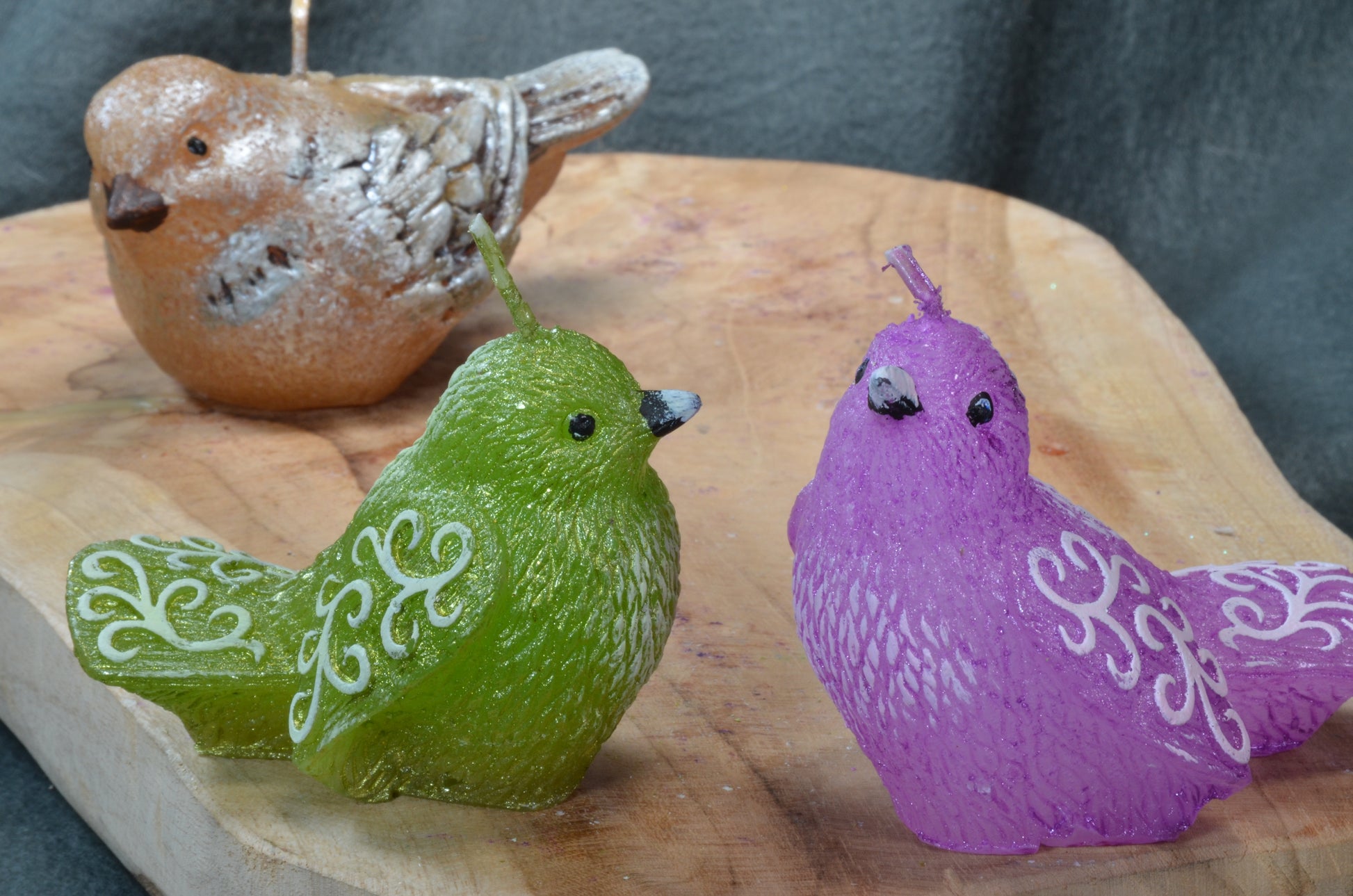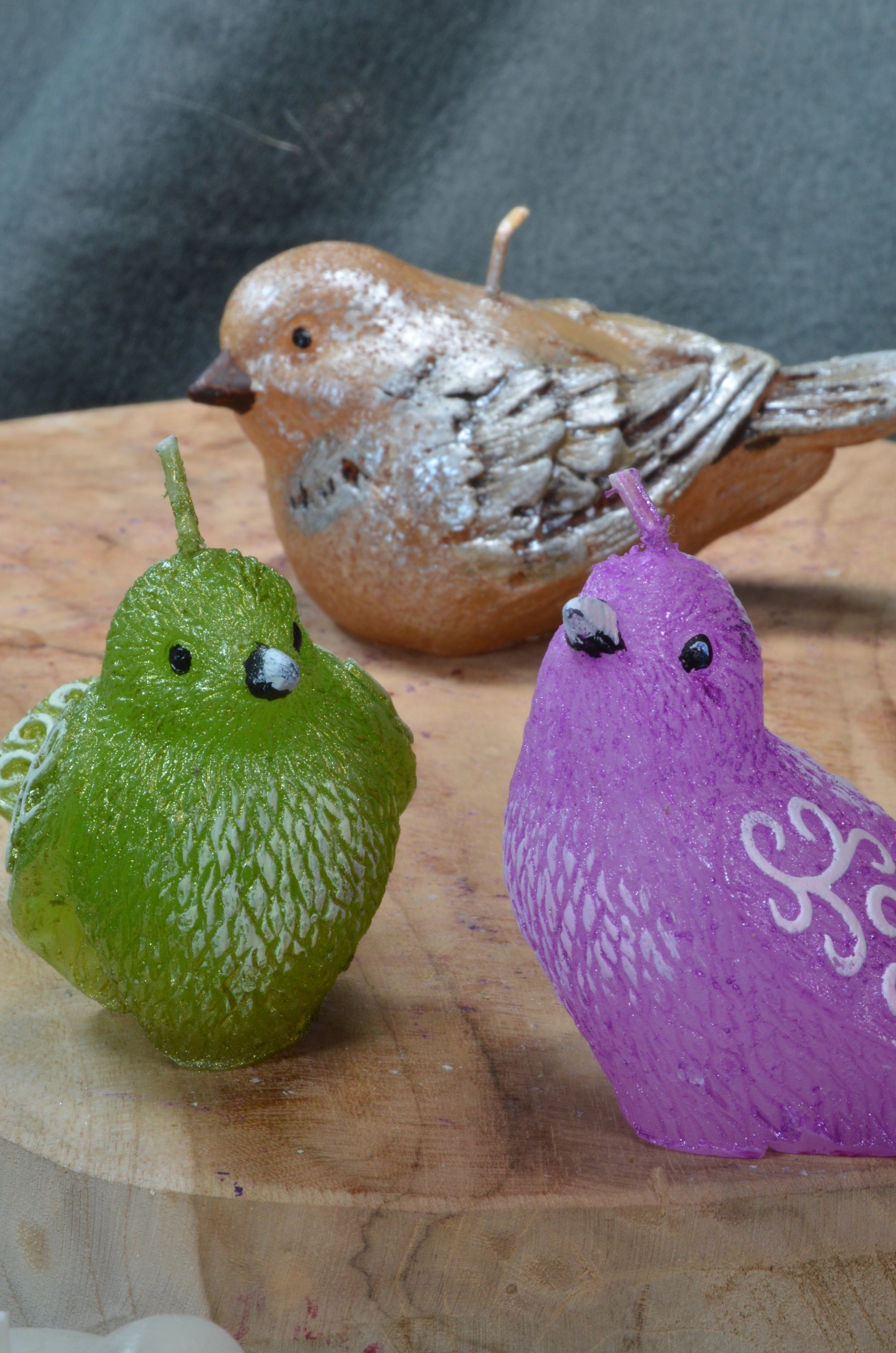 ============================== Set van 5 verschillende Vofgeltjes Kaarsen. Allemaal zijn ze met de hand gemaakt. Een set van 5 kaarsen voor een hele symphatieke en diervriendelijke prijs.